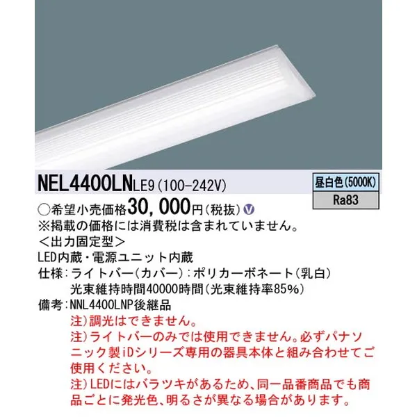 パナソニック 施設照明器具 LEDベースライト ライトバー NEL4400LNLE9