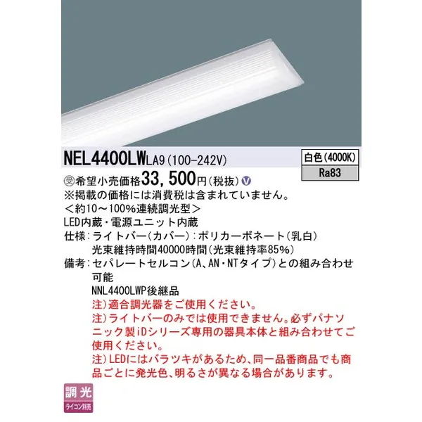パナソニック 施設照明器具 LEDベースライト ライトバー NEL4400LWLA9