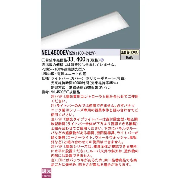 パナソニック 施設照明器具 LEDベースライト ライトバー NEL4500EVRZ9