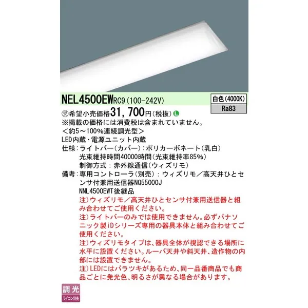 パナソニック 施設照明器具 LEDベースライト ライトバー NEL4500EWRC9