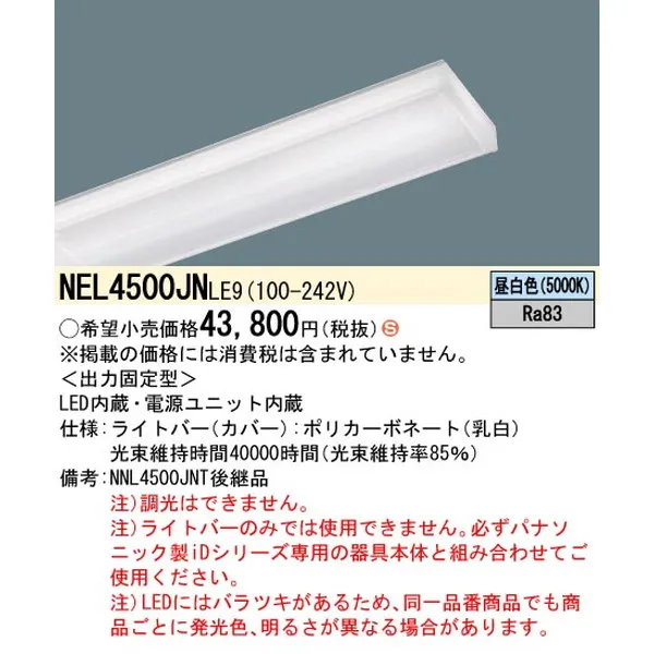 パナソニック 施設照明器具 LEDベースライト ライトバー NEL4500JNLE9