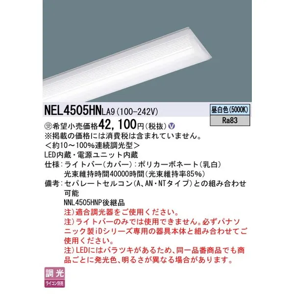 パナソニック 施設照明器具 LEDベースライト ライトバー NEL4505HNLA9