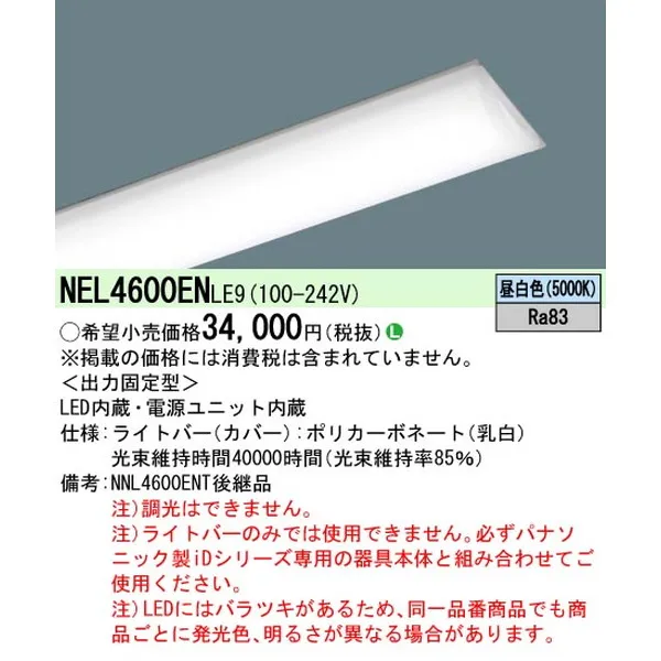 パナソニック 施設照明器具 LEDベースライト ライトバー NEL4600ENLE9