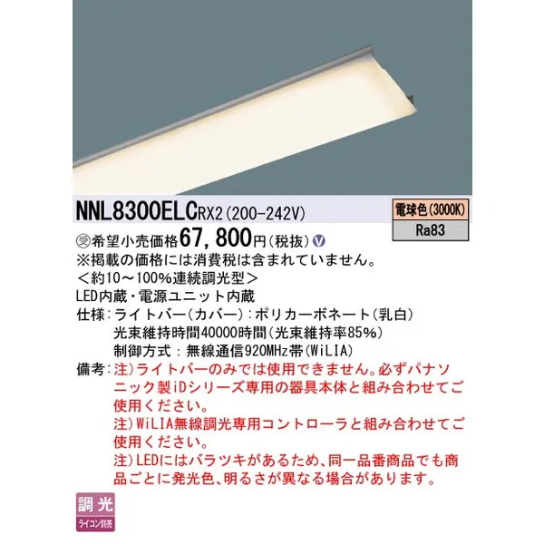 パナソニック 施設照明器具 LEDベースライト ライトバー NNL8300ELCRX2