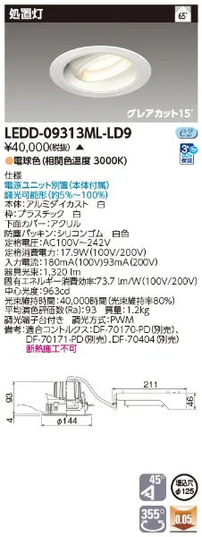 東芝ライテック ダウンライト 一体形DL処置灯Φ125 LEDD-09313ML-LD9
