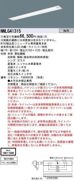 パナソニック リニューアル用 器具本体(非常用) 30分間タイプ 自己点検スイッチ付 NNLG41315