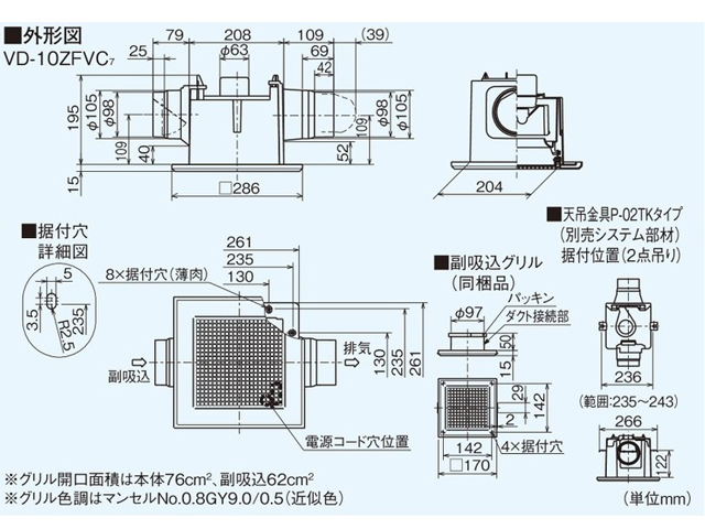 質量(kg) 1.9 接続パイプ(mm) Φ100