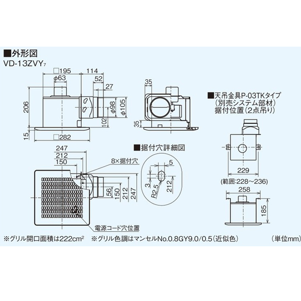 質量(kg) 2.6 接続パイプ(mm) Φ100
