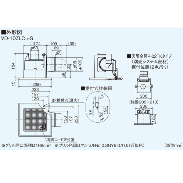 【24時間換気(弱)】[50Hz]3.5[60Hz]3.9開放風量(m3/h) 【強】[50Hz]90[60Hz]95