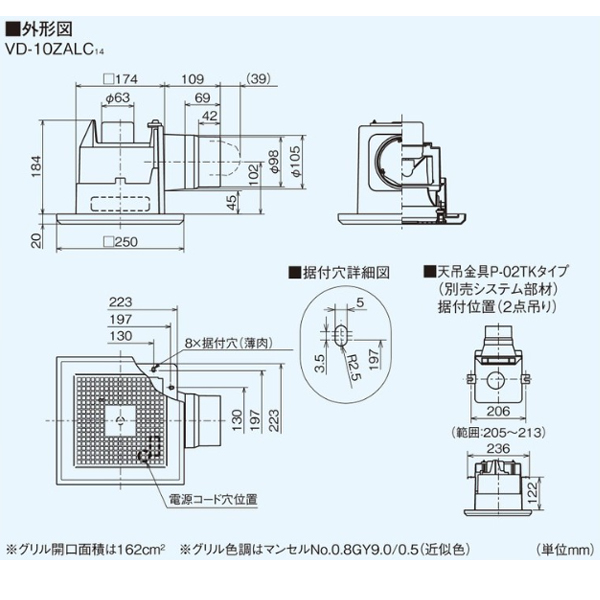 三菱電機 天井埋込形換気扇 樹脂製 ルーバーセット 低騒音形 人感センサー付き VD-10ZALC14