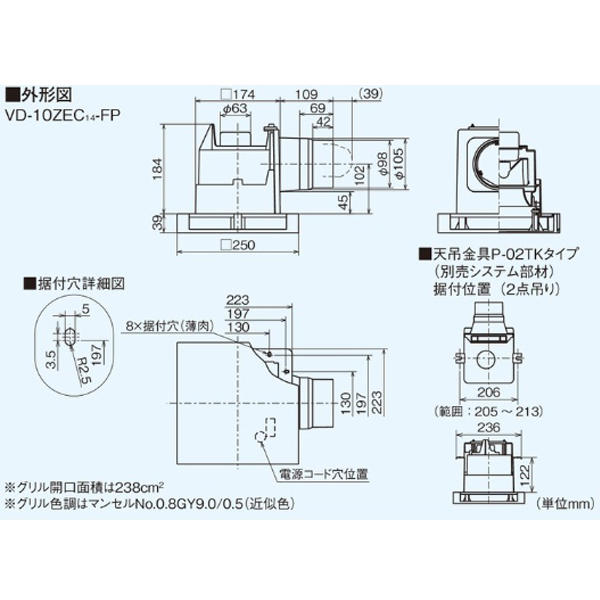 【60hz】20質量(kg) 1.5 接続パイプ(mm) Φ100