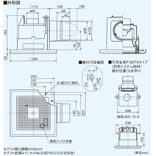 【60hz】32.5質量(kg) 1.5 接続パイプ(mm) Φ100