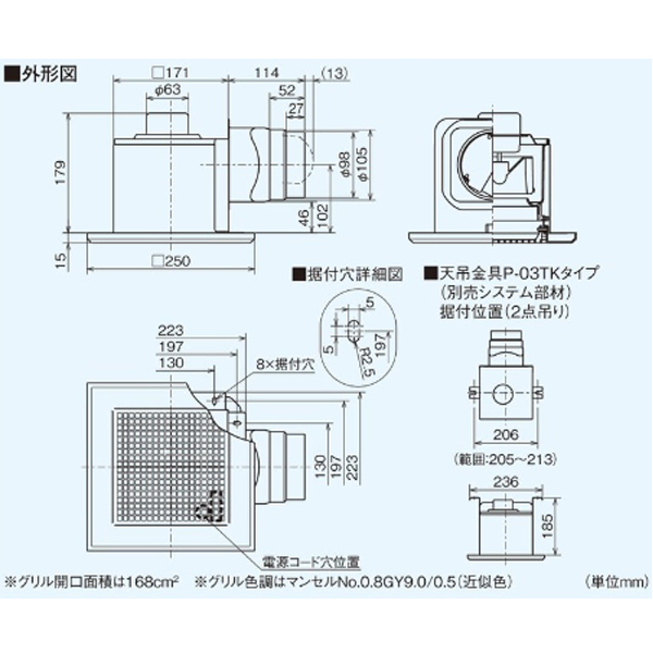 【60hz】25.5質量(kg) 1.9 接続パイプ(mm) Φ100