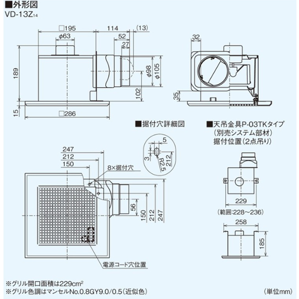 【60hz】29質量(kg) 2.2 接続パイプ(mm) Φ100