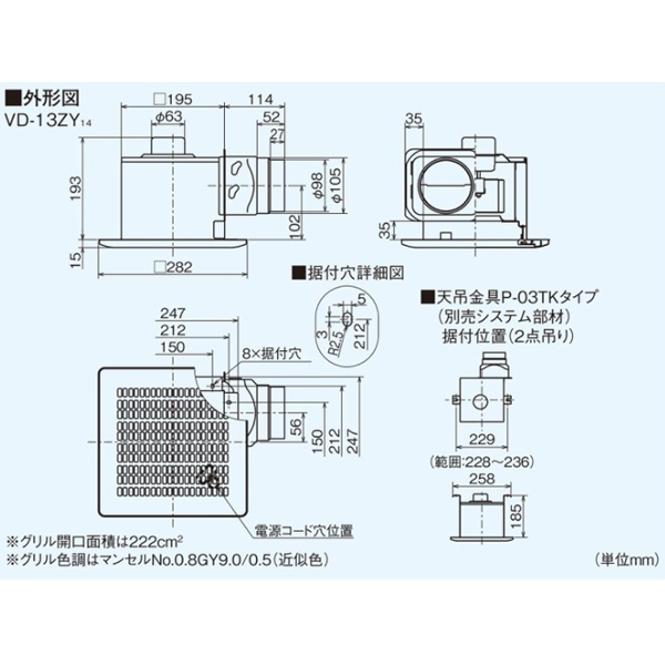 【60hz】39質量(kg) 1.6 接続パイプ(mm) Φ100