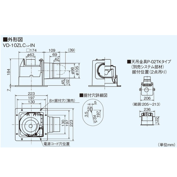 【24時間換気(弱)】【50Hz】3.5【60hz】3.9開放風量(m3/h) 【強】【50Hz】90【60hz】95