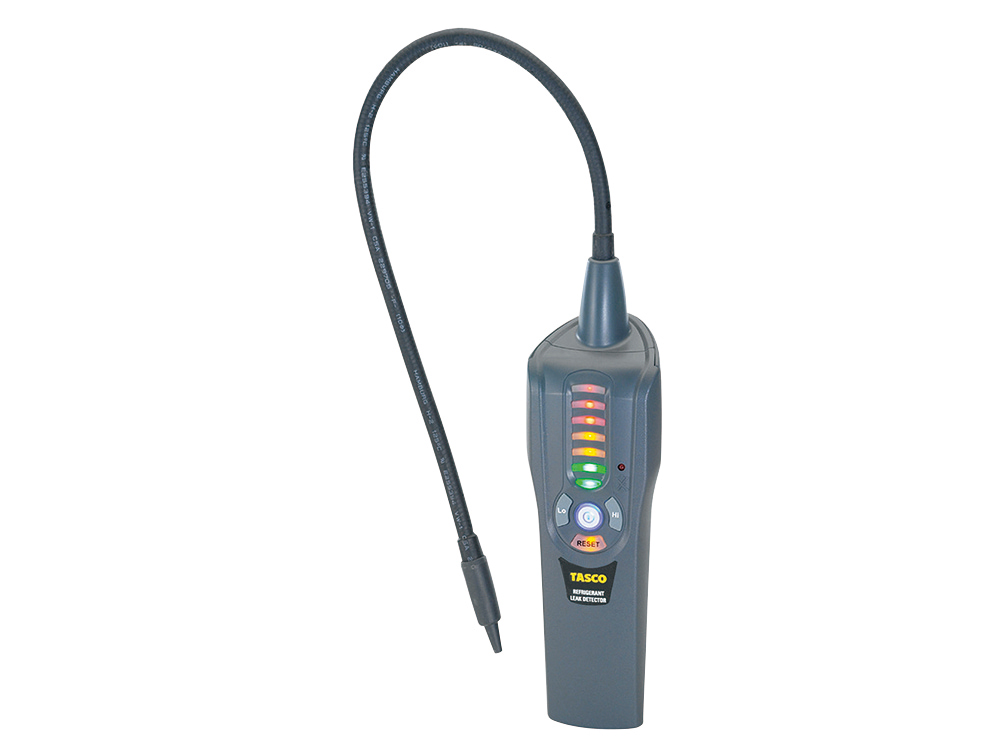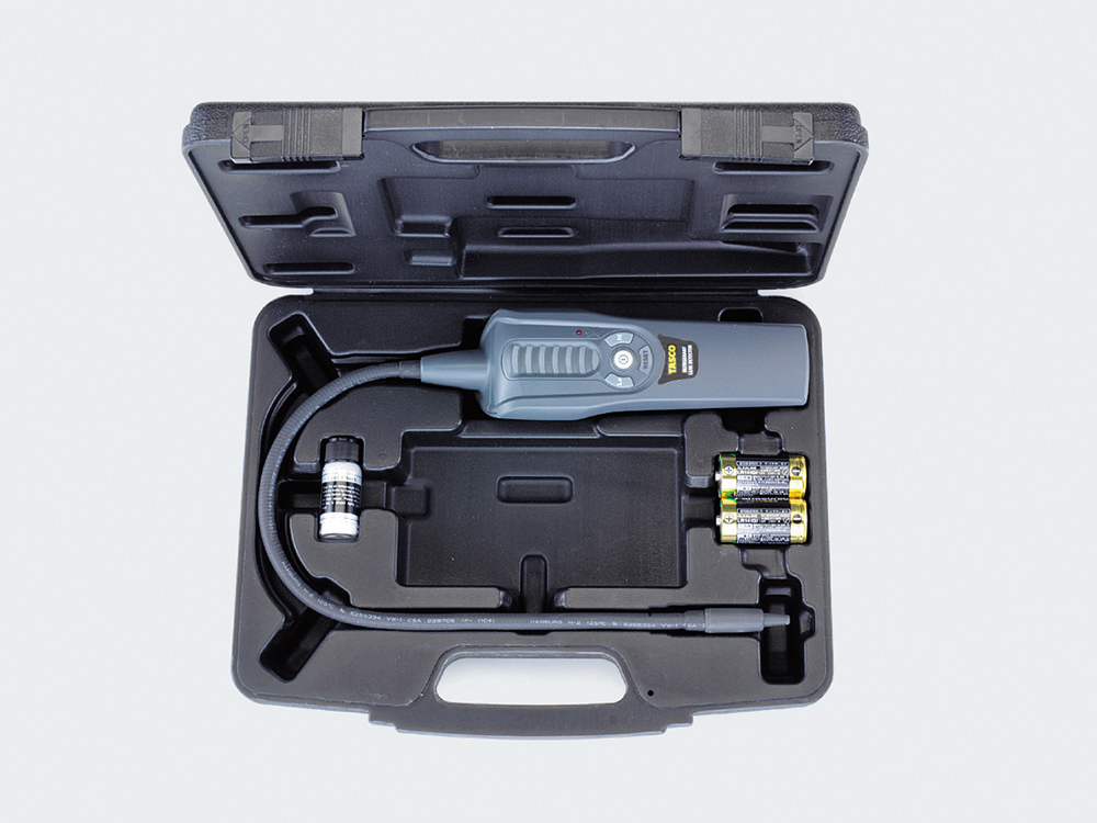対応冷媒 R410A、R32、R407C、R404A、R134a、R22、R1234yf等 検出感度 3g/年(Hi)、15g/年(Mi)、30g/年(Lo)[R410A] 検出表示方法 ブザー音と7段階LEDインジケーター( 3色) ウォームアップ時間 約45秒 オートパワーオフ 約10分 モーター回転数 2880r.p.m 本体使用環境温度 0~45℃、湿度80%以下 電源 単2アルカリ乾電池×2 吸入ポート径 5/16″フレア サイズ(本体)・質量 L222×W66×H51mm・約420g(電池含む) 付属品 キャリングケース、リークチェック液