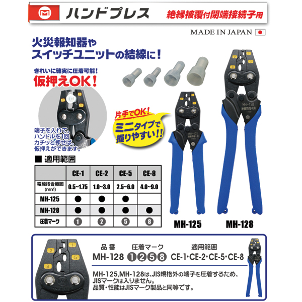 マーベル ハンドプレス(絶縁被覆付閉端接続子用)  MH-128
