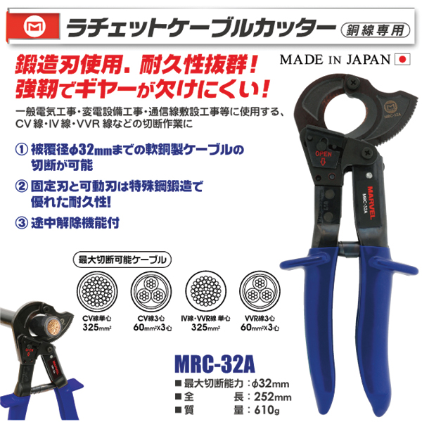 マーベル ラチェットケーブルカッター(銅線専用) MRC-32A