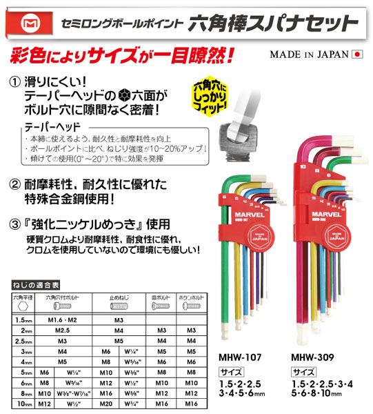 マーベル セミロングボールポイント六角棒スパナセット(7本組) MHW-107