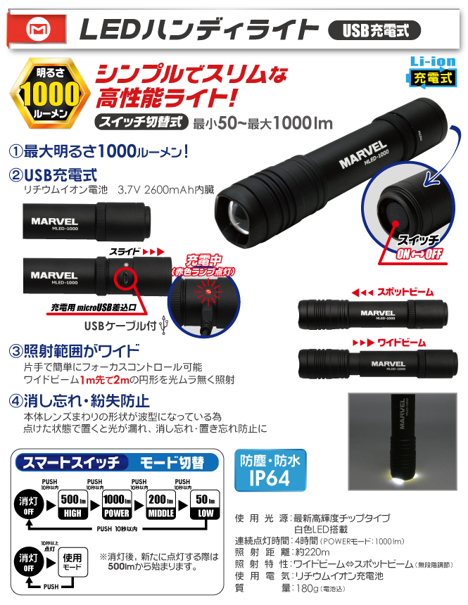 USB充電式…リチウムイオン電池 3.7V 2600mAh内臓