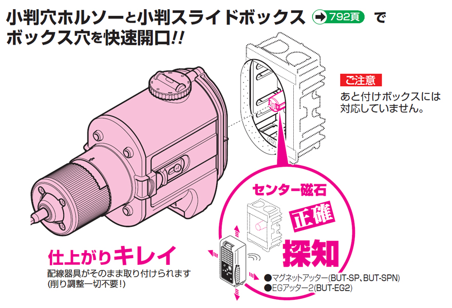・小判穴ホルソー用パネルボックスには使用できません。(鉄製も含む)