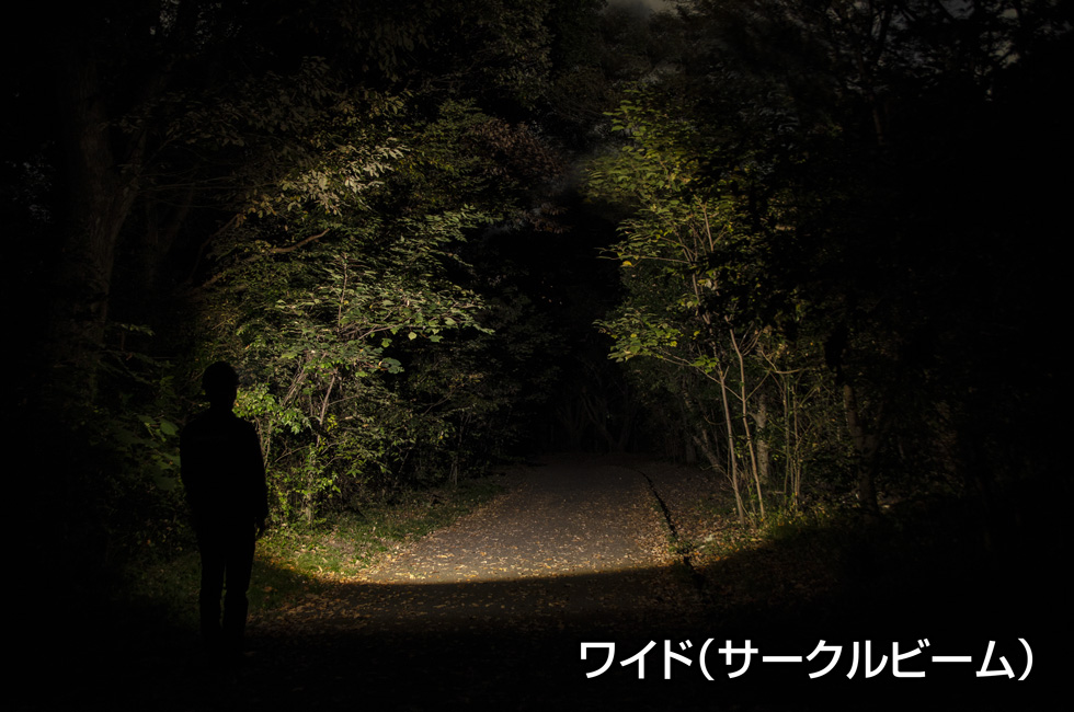 フォーカスベゼルを操作することでスポットビームからワイドビームまで無段階に調節可能。