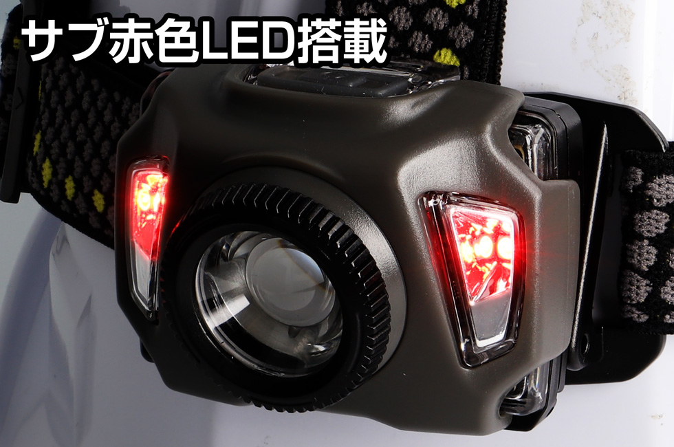 暗い場所で手元を照らすなど、メインLEDでは明るすぎる際に便利。