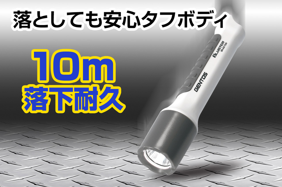 照射特性 照射角固定 ワイドビーム 照射距離(約) 166m(最大時) 保護等級 耐塵・2m防水仕様(IP68準拠) 落下耐久 10m落下耐久 本体サイズ(約) φ33.8×158.0mm 本体質量(約) 126g(電池含む) 付属品 ストラップ、テスト用電池