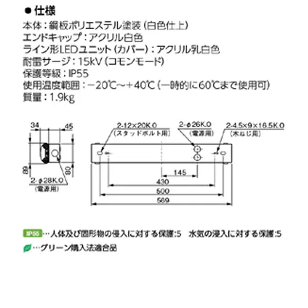 岩崎電気 LEDベースライト レディオック マルチライン トラフ形 500mmタイプ (鋼板) 昼白色 ELTW22401NPN9