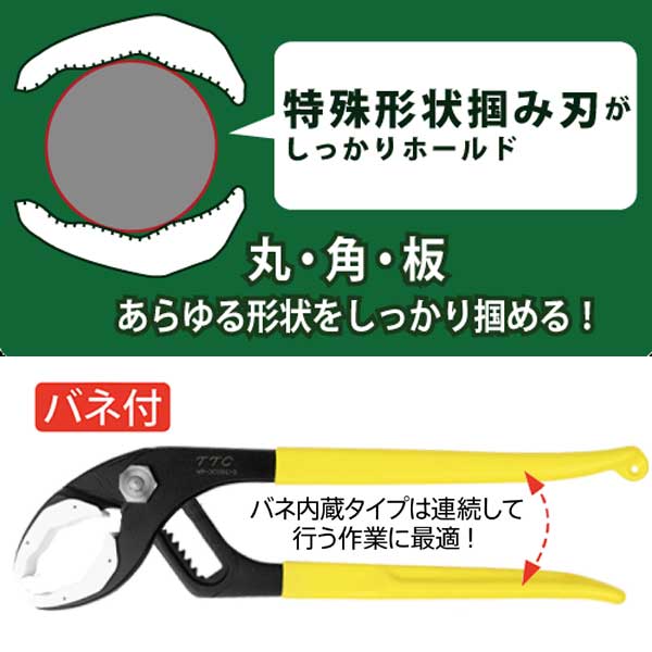 ●樹脂製掴み部で傷つけないソフトなくわえ部です。