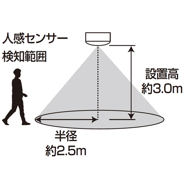※センサーが反応する照度レベル・センサーの検知範囲・点灯保持時間(人や熱源を検知しなくなってから自動消灯するまでの時間)は調節できません。