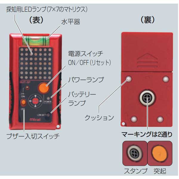 探知し、その位置で穴あけポイントの印(マーキング)ができます。