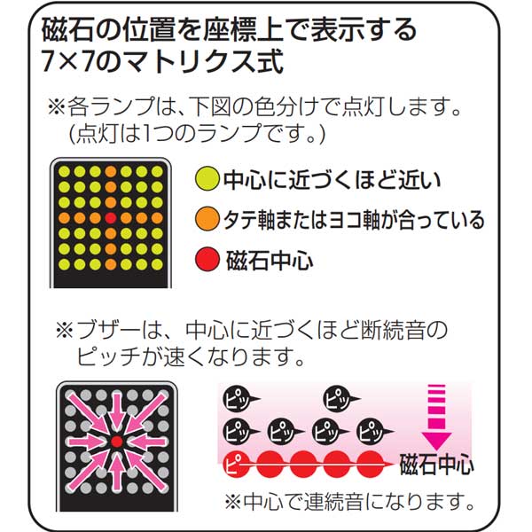- ●見易いマトリクスLEDランプとブザーでスライドボックスの磁石を正確に
