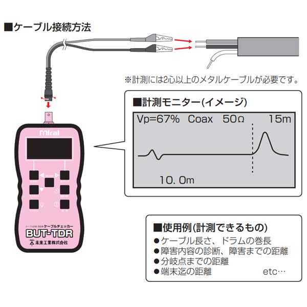 ●モニターに映し出される波形からケーブルの障害箇所までの距離や障害の 内容が診断できます。