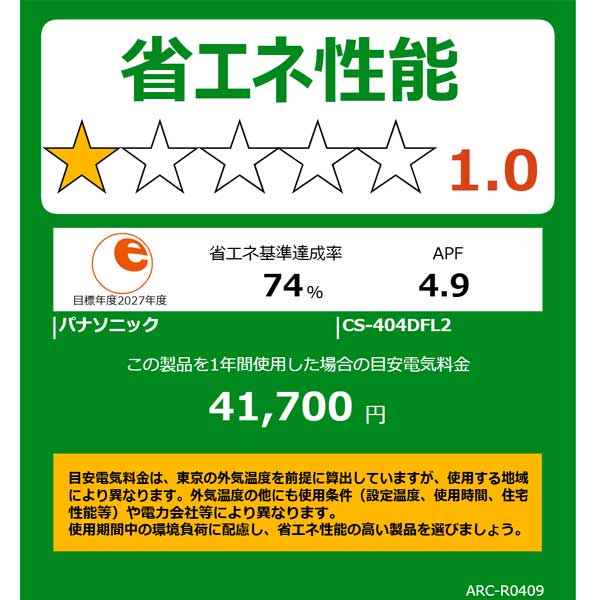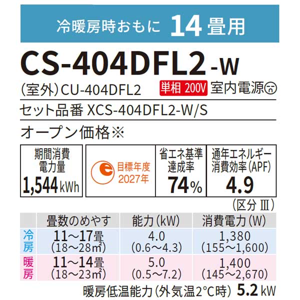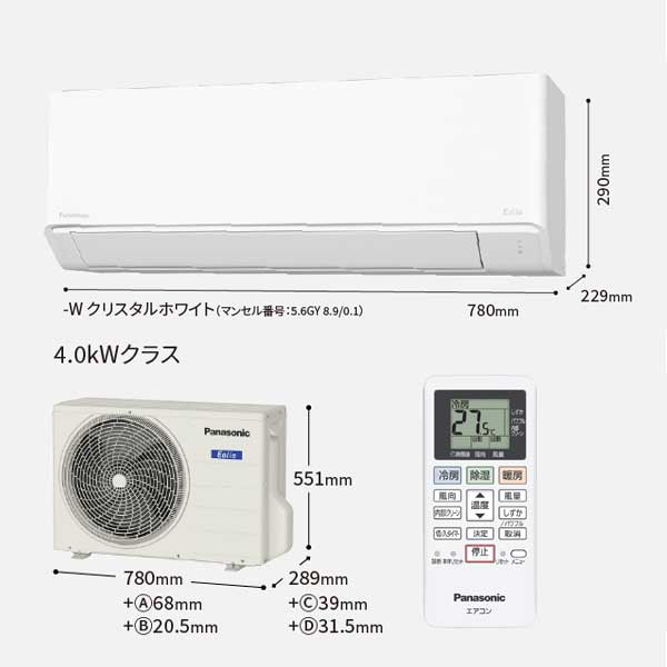 パナソニック ルームエアコン おもに14畳用 CS-404DF2L-W エオリア Fシリーズ 4.0kw