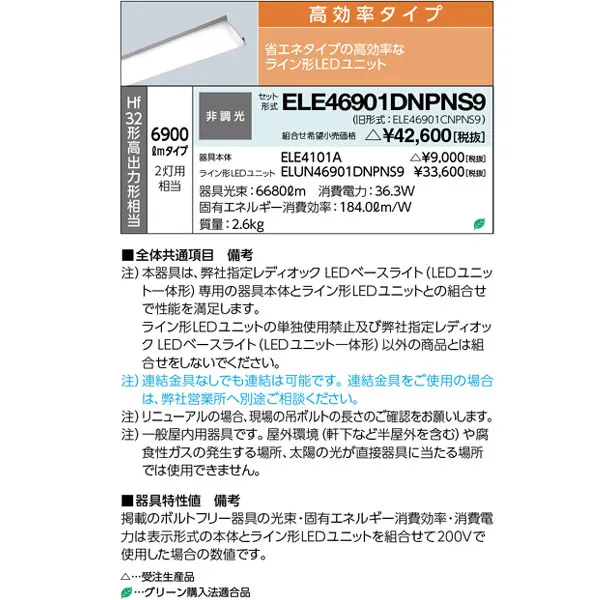岩崎電気 LEDベースライト 埋込下面開放形 W150 ELE46901DNPNS9