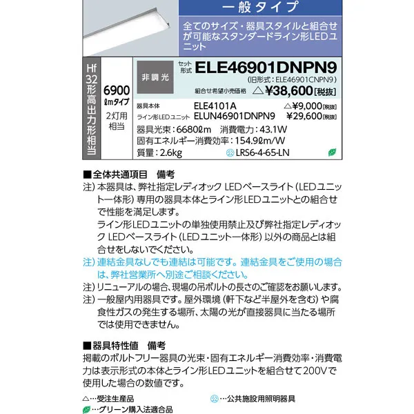岩崎電気 LEDベースライト 埋込下面開放形 W150 ELE46901DNPN9