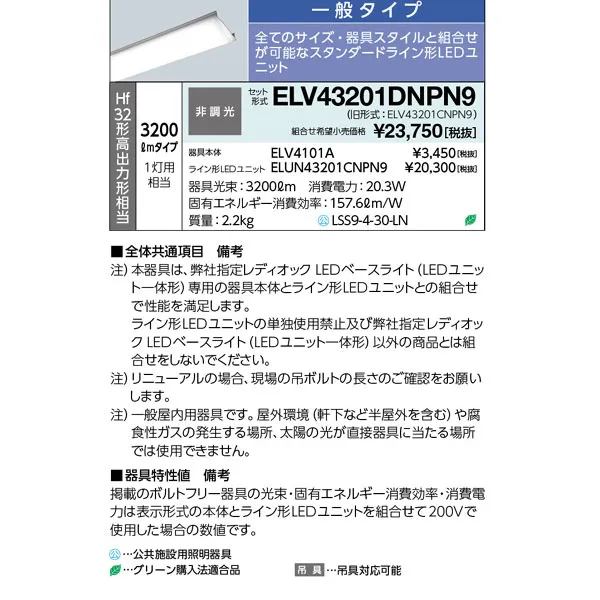 岩崎電気 LEDベースライト 40W形 逆富士形 W150 昼白色 Hf32形高出力形相当 ELV43201DNPN9
