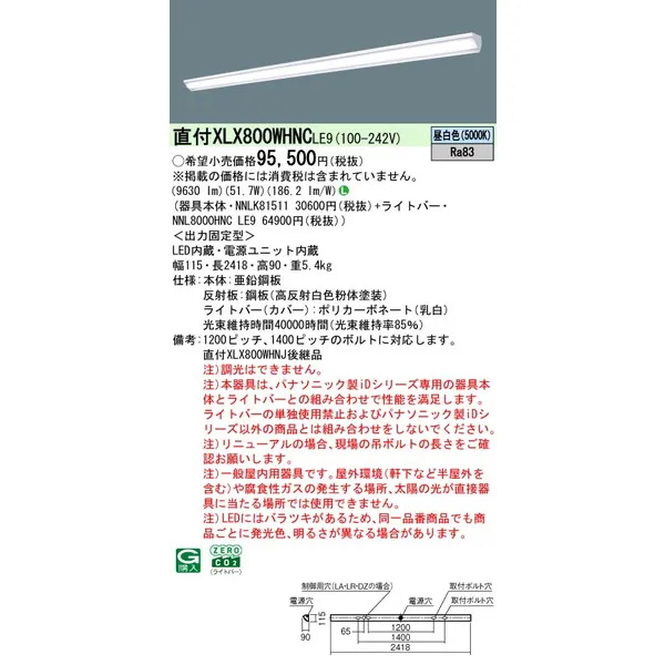 パナソニック iDシリーズ 天井直付型 110形 一体型LEDベースライト ウォールウォッシャ XLX800WHNCLE9 昼白色(5000K)