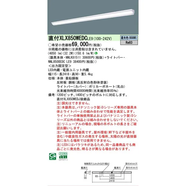 パナソニック iDシリーズ 天井直付型 110形 一体型LEDベースライト ウォールウォッシャ XLX850WEDCLE9 昼光色(6500K)