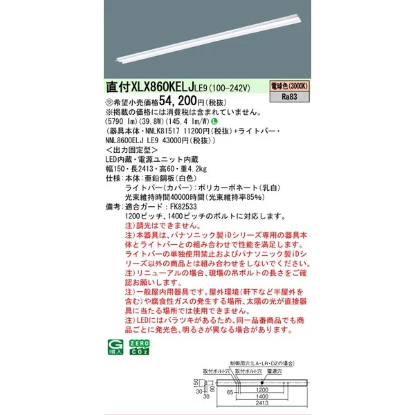 パナソニック iDシリーズ 天井直付型 110形 一体型LEDベースライト 反射笠付 XLX860KELJLE9 電球色(3000K)