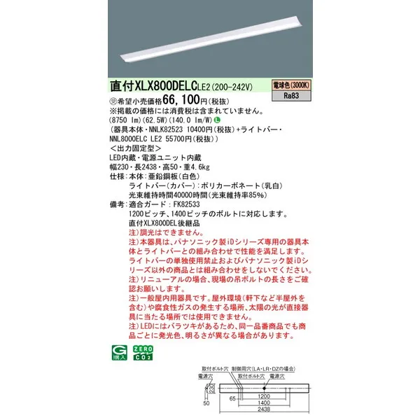 パナソニック iDシリーズ 天井直付型 110形 一体型LEDベースライト Dスタイル W230 富士型 XLX850DELCLE9 電球色(3000K)