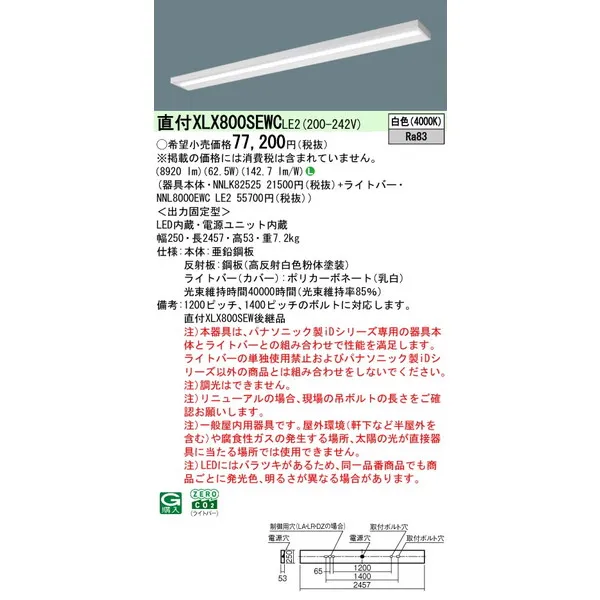 パナソニック iDシリーズ 天井直付型 110形 一体型LEDベースライト スリムベース XLX800SEWCLE2 白色(4000K)