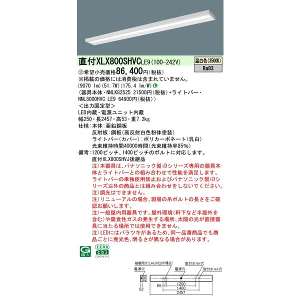 パナソニック iDシリーズ 天井直付型 110形 一体型LEDベースライト スリムベース XLX800SHVCLE9 温白色(3500K)