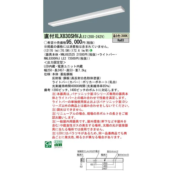 パナソニック iDシリーズ 天井直付型 110形 一体型LEDベースライト スリムベース XLX830SHVJLE2 温白色(3500K)