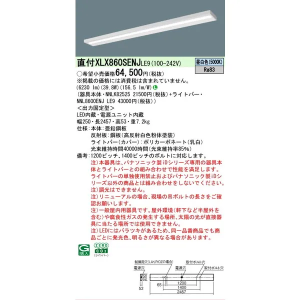 パナソニック iDシリーズ 天井直付型 110形 一体型LEDベースライト スリムベース XLX860SENJLE9 昼白色(5000K)