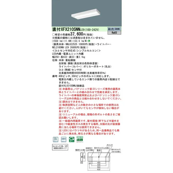 パナソニック iDシリーズ 天井直付型 20形 一体型LEDベースライト スリムベース XFX210SNNLE9 昼白色(5000K)