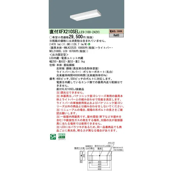 パナソニック iDシリーズ 天井直付型 20形 一体型LEDベースライト スリムベース XFX210SELLE9 電球色(3000K)