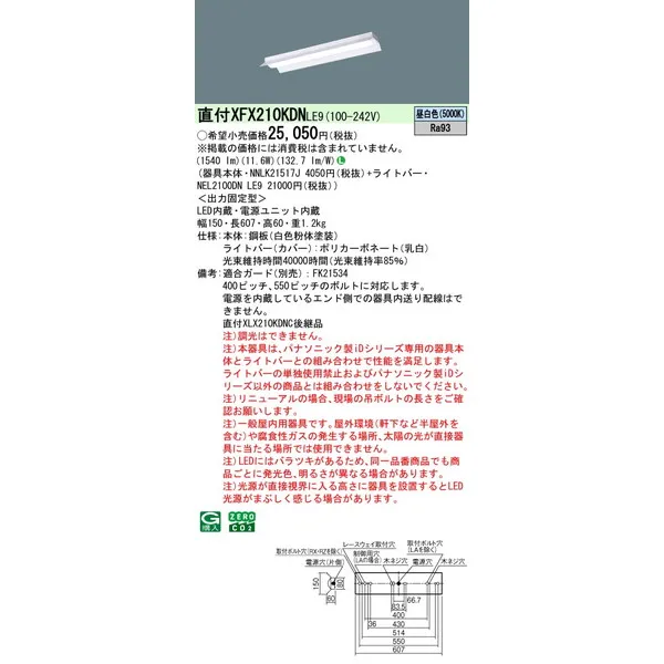 パナソニック iDシリーズ 天井直付型 20形 一体型LEDベースライト 反射笠付 XFX210KDNLE9 昼白色(5000K)
